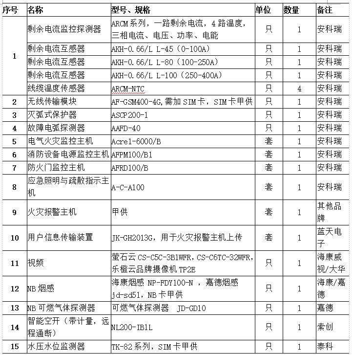 注:以下配置為針對1個回路選型,其中剩余電流互感器應根據現場回路電流大