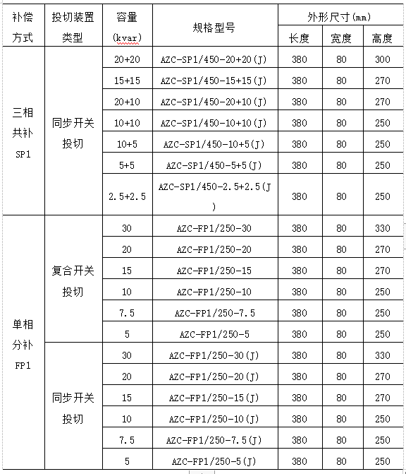 AZC/AZCL系列智能電容器是應用于0.4kV、50Hz低壓配電中用于節省能源、降低線損、提高功率因數和電能質量的新一代無功補償設備。它由智能測控單元,晶閘管復合開關電路,線路保護單元,兩臺共補或一臺分補低壓電力電容器構成??商娲R幱扇劢z、復合開關或機械式接觸器、熱繼電器、低壓電力電容器、指示燈等散件在柜內和柜面由導線連接而組成的自動無功補償裝置。具有體積更小,功耗更低,維護方便,使用壽命長,可靠性高的特點,適應現代電網對無功補償的更高要求。