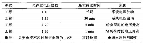 (2)允許運行電壓:電容器的壽命會隨電壓的升高而縮短,因此須嚴格控制電容器的運行電壓。電容器的額定電壓應不低于所接入的系統的運行電壓,并且還要考慮接入電容器后所引起的電壓升高。為降低諧波及其他影響而接入串聯電抗器時電容器端子上電壓將高于系統運行電壓,此時有必要選用額定電壓較高的電容器,具體如表1所示。