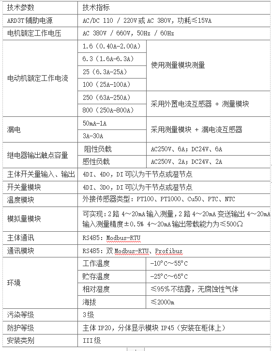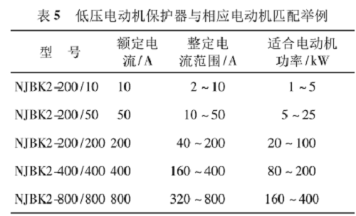 電動機保護器樣本中的技術性能就提供與電機相匹配的數據,如表 5 所示。