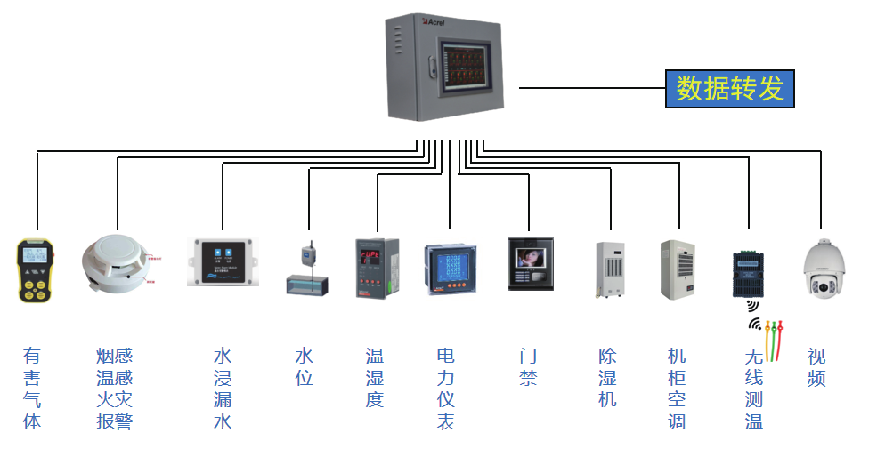 安科瑞電氣股份有限公司根據(jù)配電室實(shí)際情況,結(jié)合多年的變電站和配電室的運(yùn)行管理經(jīng)驗(yàn),自主研發(fā)了安科瑞配電室綜合監(jiān)控系統(tǒng),實(shí)現(xiàn)了智能開關(guān)柜運(yùn)行監(jiān)控、高壓開關(guān)柜帶電顯示、電流電壓等負(fù)載運(yùn)行監(jiān)控、母線測溫監(jiān)測、電纜測溫監(jiān)測、環(huán)境監(jiān)測、有害氣體監(jiān)測、安防監(jiān)控、采暖通風(fēng)、門禁、燈光、風(fēng)機(jī)、除濕機(jī)、空調(diào)控制等功能。實(shí)現(xiàn)動力環(huán)境各數(shù)據(jù)的檢測與設(shè)備控制,實(shí)現(xiàn)動力環(huán)境優(yōu)化,避免運(yùn)行環(huán)境的失控導(dǎo)致配電設(shè)備運(yùn)行故障,保證維護(hù)人員安全,延長設(shè)備使用壽命,減少配電室粗放式管理導(dǎo)致成本過高,同時(shí)實(shí)現(xiàn)配電動力環(huán)境的分布式遠(yuǎn)程管理。