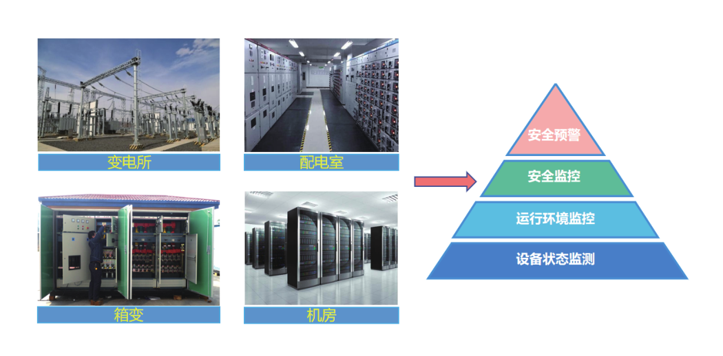 智能化配電房的建設(shè)將整合電力SCADA系統(tǒng),環(huán)境監(jiān)控系統(tǒng),安防系統(tǒng),門禁系統(tǒng),線路監(jiān)控系統(tǒng),能耗管理系統(tǒng),GIS系統(tǒng)等,更安全,更智能的電力供應(yīng)提供保障,通過物聯(lián)網(wǎng)技術(shù)手段,將配電房的實(shí)時(shí)狀態(tài)進(jìn)行監(jiān)測,以達(dá)到更安全,更少人,更經(jīng)濟(jì)運(yùn)行的目的。同時(shí)結(jié)合GIS系統(tǒng),利用電子地圖及衛(wèi)星影像圖為背景,繪制配電房的分布圖,通過電力SCADA系統(tǒng)將實(shí)時(shí)運(yùn)行數(shù)據(jù)與對應(yīng)的電房和低壓線路相關(guān)聯(lián),通過線條顏色的變化直觀地反應(yīng)異常的運(yùn)行數(shù)據(jù)。環(huán)境監(jiān)控系統(tǒng)及安防系統(tǒng)的接入,保障了配電房內(nèi)環(huán)境問題,監(jiān)測設(shè)備的異常狀態(tài),便于集中監(jiān)控、集中管理、集中維護(hù)。線路監(jiān)控系統(tǒng)通過簡易的貼片燈方式反饋線路當(dāng)前的溫度,針對重要部位及電纜頭等位置監(jiān)控,在發(fā)生故障問題之前