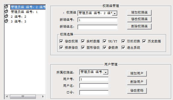 為保障系統(tǒng)安全穩(wěn)定運(yùn)行,設(shè)置了用戶權(quán)限管理功能。通過用戶權(quán)限管理能夠防止未經(jīng)授權(quán)的操作(如遙控的操作,數(shù)據(jù)庫修改等)。可以定義不同級別用戶的登錄名、密碼及操作權(quán)限,為系統(tǒng)運(yùn)行、維護(hù)、管理提供可靠的安全保障。