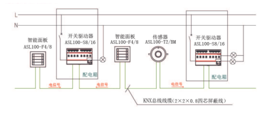 Acrel-BUS智能照明控制系統(tǒng)采用標準的2*2*0.8EIB BUS總線(即KNX總線)作為總線線纜,將所有的智能照明控制模塊連接到一起并組成一套完整的控制系統(tǒng),既可實現(xiàn)照明燈具的遠程集中控制,又可實現(xiàn)就近控制功能。該系統(tǒng)理論可連接控制模塊數(shù)量達580000多個。