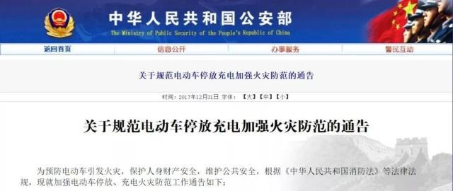 日公安部消防局發布《關于規范電動車停放充電加強火災防范的通告》,要求充分認識電動車火災危害,落實停放充電管理責任,規范電動車停放充電行為,嚴厲查處違規停放充電行為。