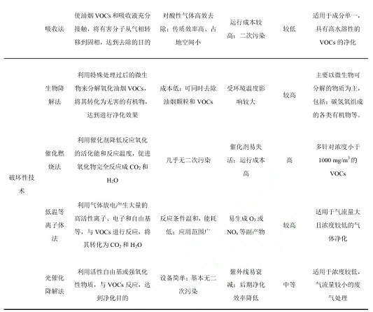 2)目前我國(guó)餐飲油煙凈化設(shè)備主要針對(duì)油煙顆粒物的去除,但對(duì)于油煙VOCs的末端
