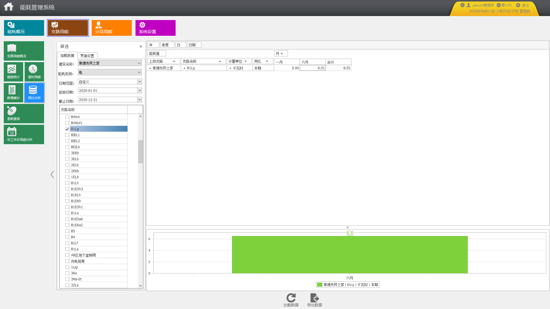 系統(tǒng)可將各主要耗能設(shè)備的能耗與去年同期值和上月值進(jìn)行同比環(huán)比分析,檢驗(yàn)節(jié)能效果,根據(jù)分析結(jié)果執(zhí)行節(jié)能績效考核,以及節(jié)能目標(biāo)的修正。統(tǒng)計(jì)各支路當(dāng)年每月用能及去年同期用能;