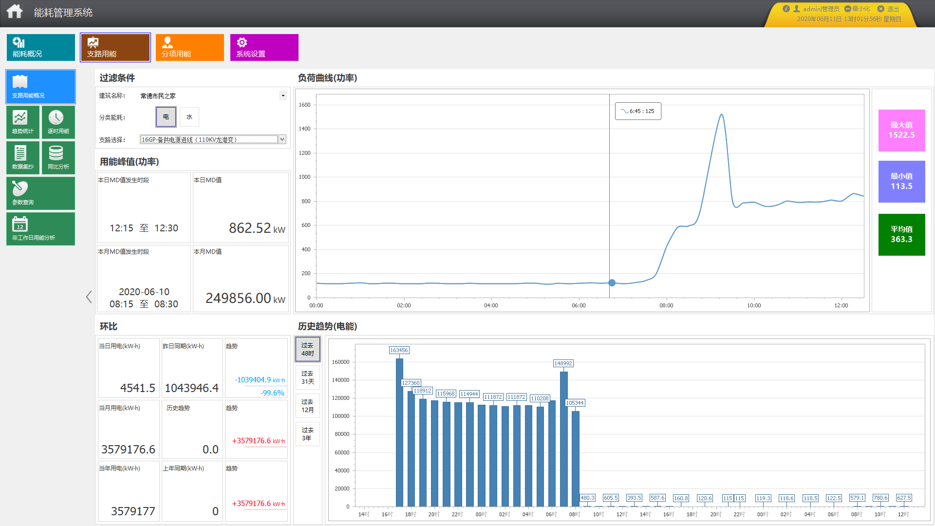 建筑的能耗管理系統(tǒng)可對(duì)建筑內(nèi)的數(shù)據(jù)進(jìn)行采集、統(tǒng)計(jì)與分析,數(shù)據(jù)發(fā)布與遠(yuǎn)傳,分析優(yōu)化能源運(yùn)行方案,記錄和積累能源使用狀況。系統(tǒng)通過各種圖表、曲線等從真正意義上實(shí)現(xiàn)能源使用的實(shí)時(shí)在線監(jiān)控,為管理者提供不同層次的管理權(quán)限,隨時(shí)隨地可以對(duì)變電所的用能情況進(jìn)行查看,并實(shí)現(xiàn)遠(yuǎn)程管理。能耗管理系統(tǒng)的建立,為業(yè)主提供了能源利用診斷、節(jié)能控制、節(jié)能潛力分析、節(jié)能效果驗(yàn)證,提高節(jié)能意識(shí)等提供有效手段。