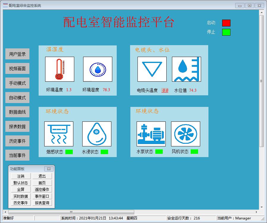 系統把環境、視頻、通風、照明、安全防范、消防、一次設備輔助監控等所有監控量在系統主界面上進行一體化顯示和控制,避免各系統孤立顯示和控制。