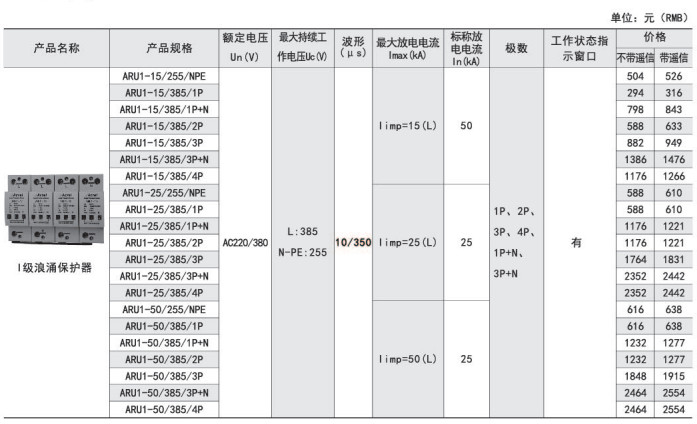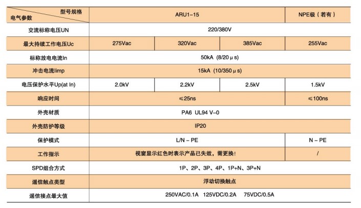 ARU1-15型SPD技術(shù)參數(shù)