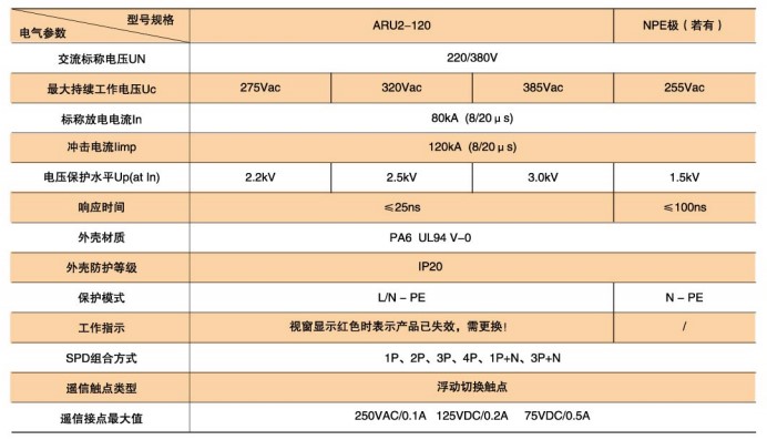 ARU2-120型SPD技術(shù)參數(shù)