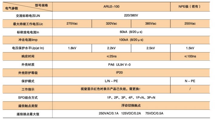 ARU2-100型SPD技術(shù)參數(shù)