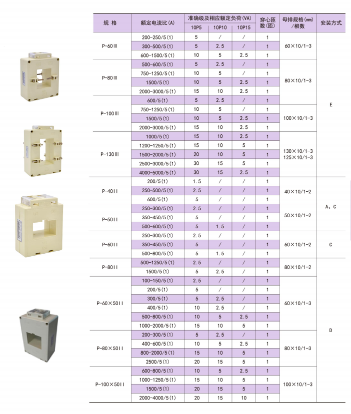 技術要求:額定電流比600A/5A;準確級10P10級;額定負荷5VA;穿心匝數1匝;穿排規格60mm×10mm 1-2根。