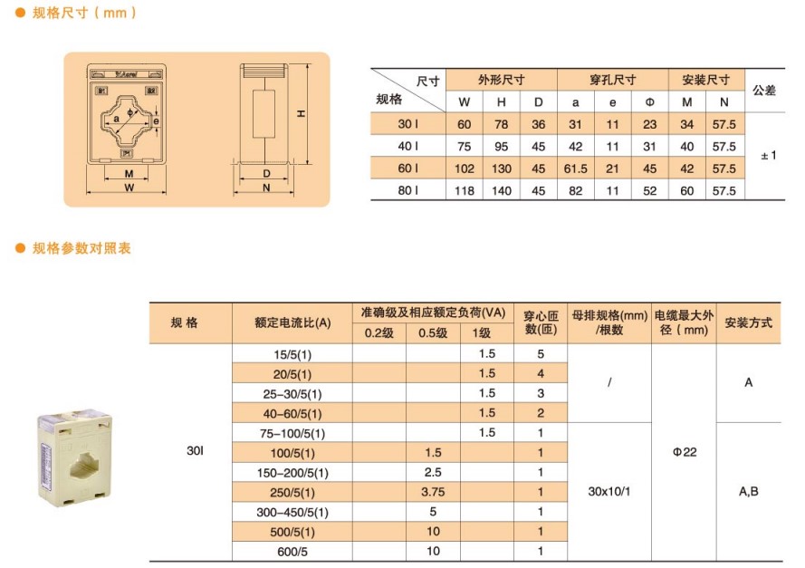 產(chǎn)品翻蓋式設(shè)計(jì),外形美觀,接線方便。翻蓋材料選用透明聚碳酸酯,能清楚看到二次引線接線情況。方圓組合孔型,既可穿越電纜,也可穿越匯流排,作為交流電流信號采集元件,一般與測量儀表配套使用廣泛應(yīng)用于電氣成套。