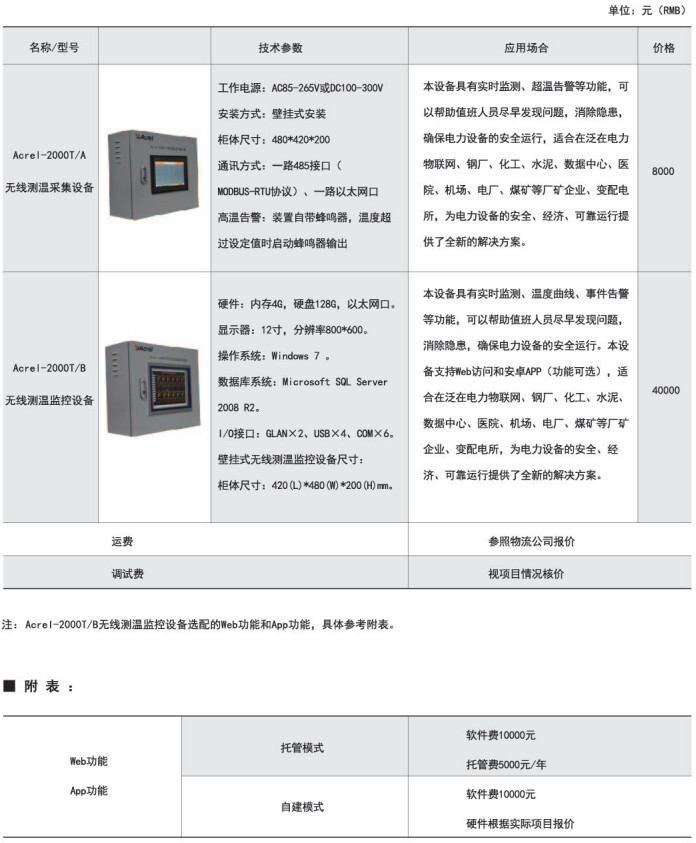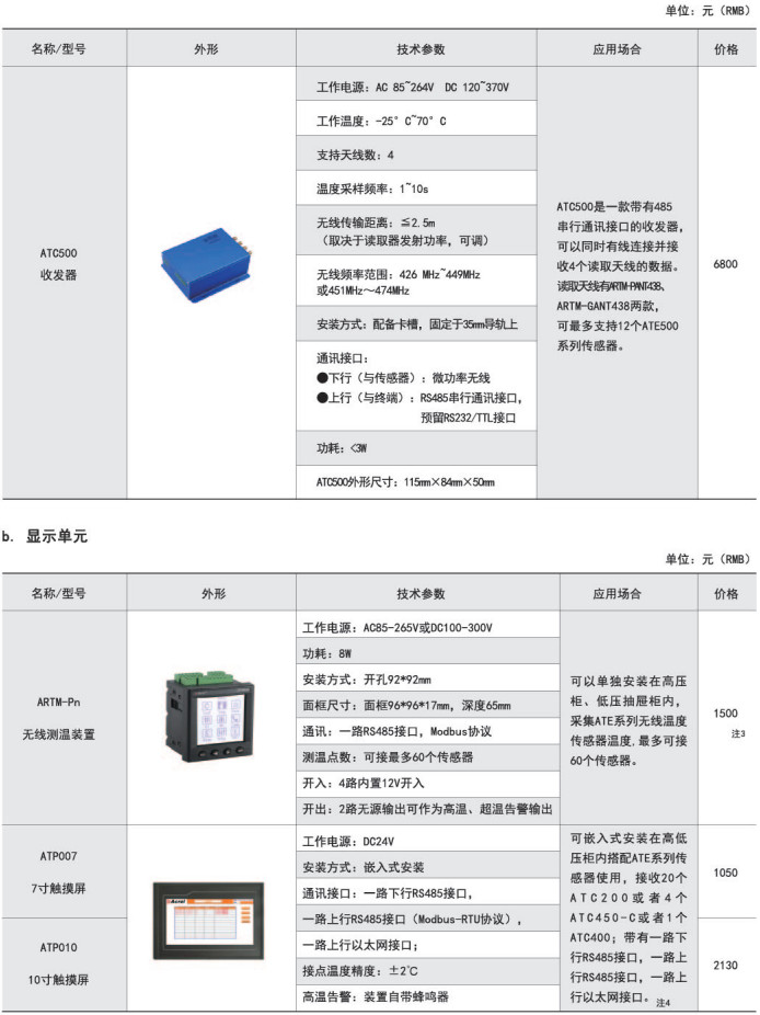 綜上所述,確定型號為:無線測溫集中觸摸屏:AARTM-7062HT-4(HI)1臺;無線測溫傳感器:ATE20090個;無線測溫收發器:ATC20010個
