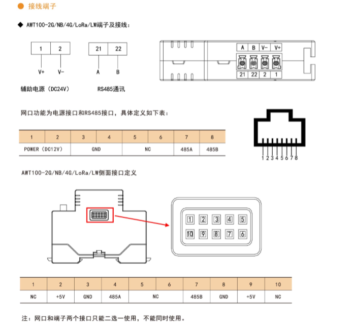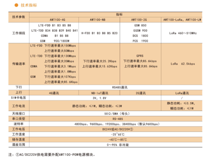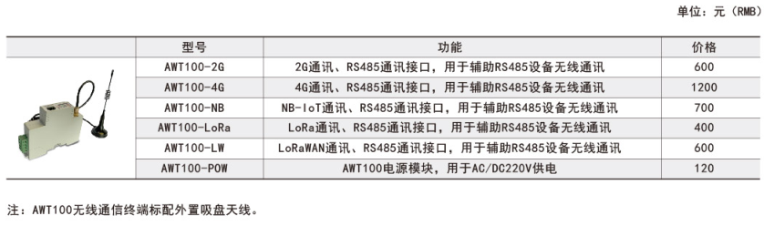 注:①AWT100-2G/NB/4G無線通信終端能通過安科瑞平臺協(xié)議與安科瑞服務(wù)器通訊。