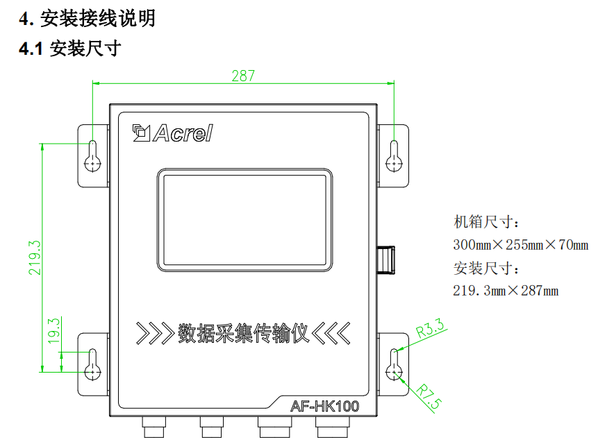 AF-HK100 污染源在線自動監控(監測)數據采集傳輸儀是應環保領域各級國控、省控及市控污染源環境在線監控(監測)系統的需求而開發研制的產品,通過模擬通道、開關通道、數字通道(RS232/485/LoRa)與前端各類監測儀器/儀表實現無縫連接,進行本地數據采集、存儲、處理與展示,并通過 4G/有線等網絡將數據遠傳至監控中心。