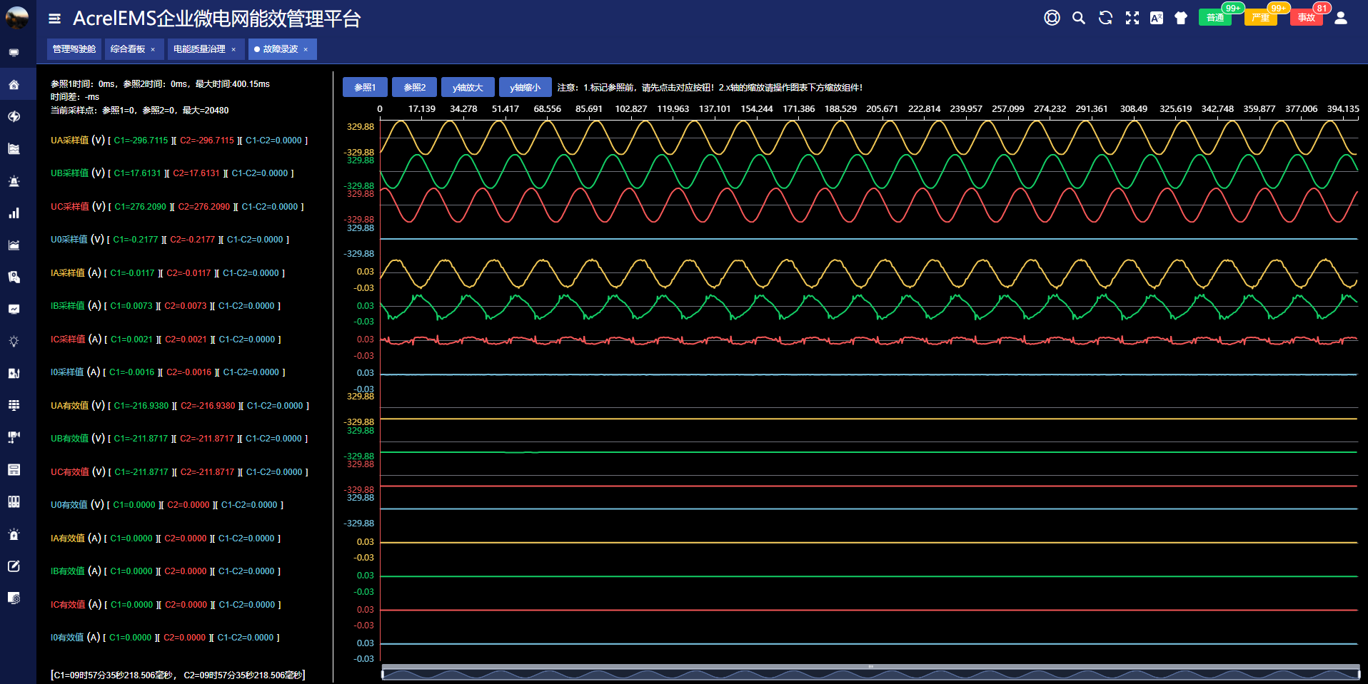 平臺可實時監測配電系統的諧波畸變、電壓波動、閃變和容忍度指標分析配電系統的電能質量。