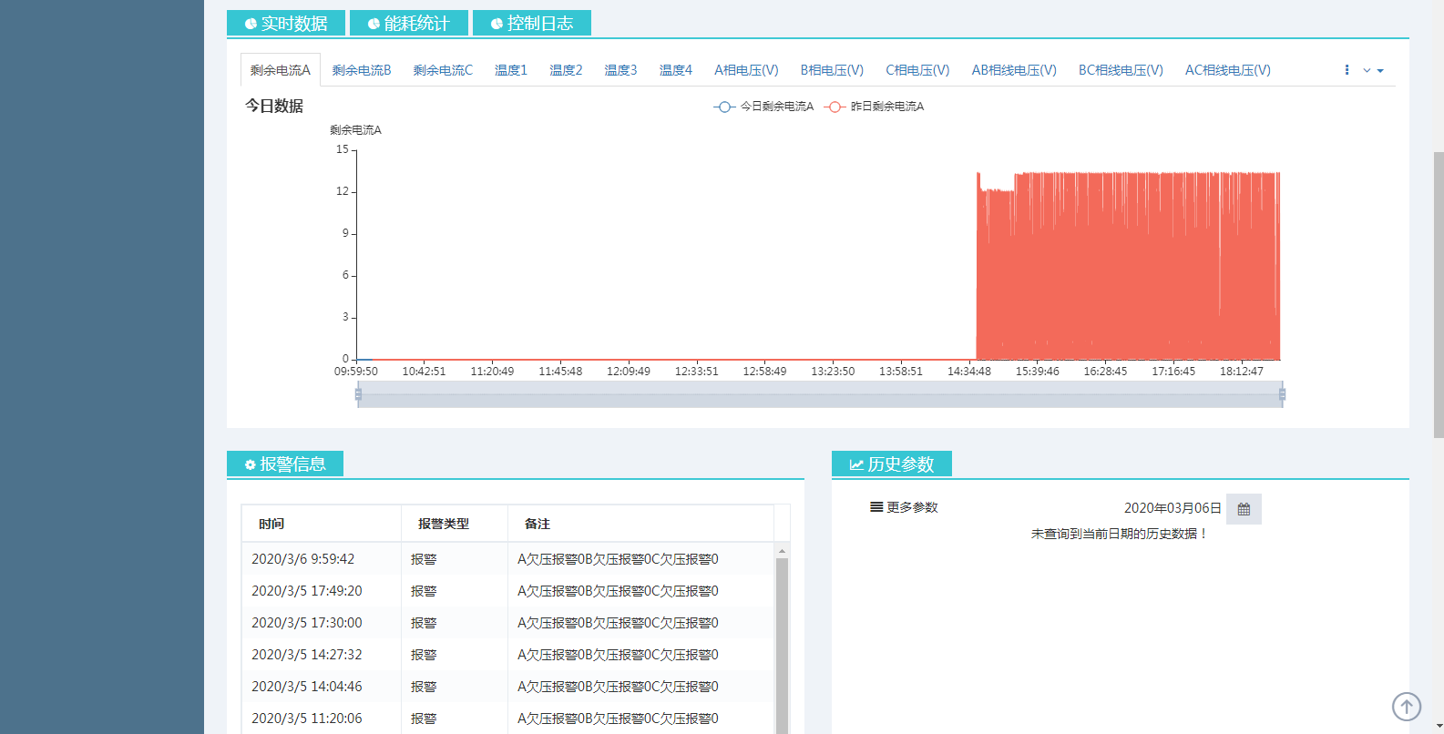 針對每個回路,可以查看各個回路的實(shí)時電參量,上下班狀態(tài),回路狀態(tài)。